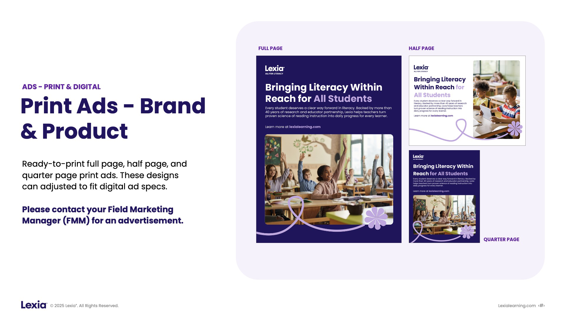 Designed 45+ templates across ad formats (generic and product-specific), email templates for full outreach sequences, direct mail and print materials, and a master sales deck with 50+ pre-designed slides including industry-specific variations, product comparisons, ROI calculators, and case study slides. Everything was designed for quick customization with brand-locked elements protecting integrity.
